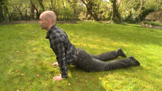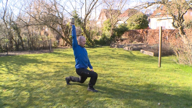 Når du har lavet Kolbøtter og Telemark'eren, skal du lave øvelserne 'Den sønderjyske dunkraft' og 'March med 20 kg'.