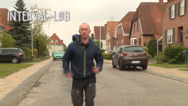 Nu skal du i gang med intervalløb, hvor du skal løbe hurtigt 1 minut og lunte roligt i 3 minutter og dette skal gentages 5 gange i træk.